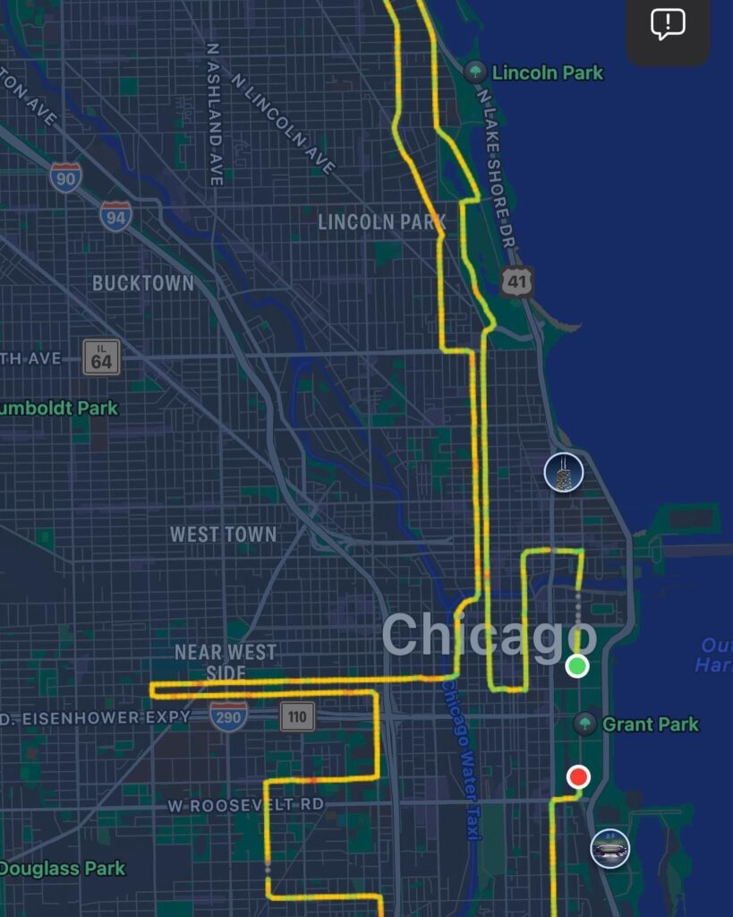 Heading to Chicago, I was feeling pretty banged up. The training took a toll on my aging body and everything seems to hurt. I brought all my equipment with me: needles, Norma Tec, foam rollers…the whole kit. I spent lots of time on self care in the days leading up to the race with the mindset of all I wanted to do was cross both the starting line AND the finish line.