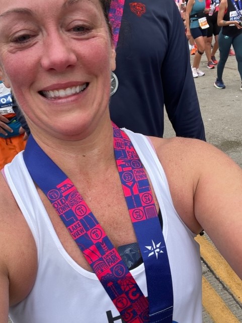 In September of 2022, I lost one of my closest childhood friends to suicide. We lived near parallel lives, both played soccer, ran track and both became PT’s. She moved to Chicago and I moved to Boston. When my colleague Alicia approached me with the idea of running the Chicago Marathon I said, I have to do this. I had never even been to Chicago and always had planned to visit. I reached out to the American Foundation for Suicide Prevention and was granted a spot on the team. For this gift I am incredibly grateful.